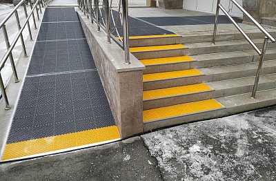 К сожалению, повреждена партия готовых тактильных покрытий для слабовидящих и покрытий для детских площадок. Мы уже предпринимаем меры для их восстановления.